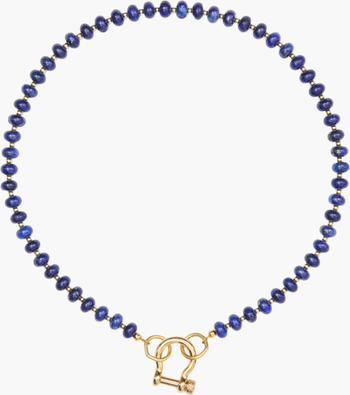 17 inch lapis necklace with 14 karat gold plated hardware and carabiner. Perfect for any occasion.