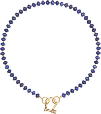 17 inch lapis necklace with 14 karat gold plated hardware and carabiner. Perfect for any occasion.