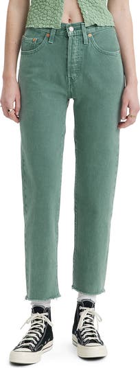 A misty green hue refreshes the iconic style of these nonstretch 501 jeans made with straight legs and frayed, cropped hems.