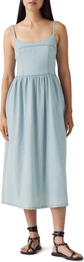 Channel easy everyday style in this nonstretch denim dress featuring a structured bustier bodice and artfully faded wash.