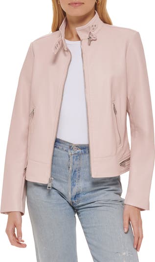 With all the attitude of the real deal, this faux-leather racer jacket revs up with authentic motocross details like exposed zippers and a buckled throat latch.