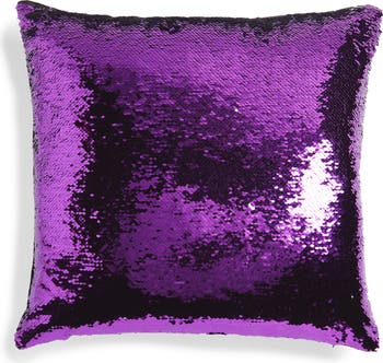 Stunning sequins flip from shimmery silver to bright purple on this unique and glamorous accent pillow.