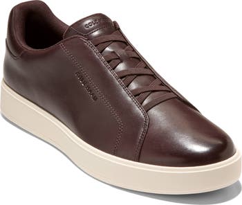 This slip-on sneaker is crafted from luxe leather in a derby-meets-low-top style featuring both sleek detailing and a white-walled rubber cup sole.