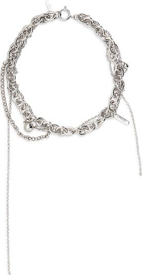 Beads and rings and chain links and a logo-engraved charm dangle and delight on this two-tone necklace with palladium and 24-karat-gold plating.