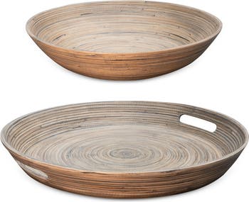 For generations, our products have been handcrafted by female Vietnamese artisans —creating pieces that are not only beautiful but deeply rooted in tradition. Lexa handcrafted products reflect this heritage, blending time-honored techniques with modern sustainability. Made from 100% natural materials, each purchase supports artisan communities and helps reduce plastic waste.\nEach product is a true original. No two are ever exactly alike, thanks to the natural variations of the material and the artisan’s hand. Slight imperfections add to their charm, showcasing the uniqueness and authenticity that mass-produced products simply can’t match. Lightweight and shatter-resistant, these products are designed for real life—durable enough for daily use, yet elegant enough to showcase in your home.\nServe in style with the LEXA 2-Piece Entertaining Set, featuring a 16” serving tray with handles and a 14” salad bowl. The oversized tray provides ample space for drinks, snacks, or a variety of dishes, and can double as a cheese board or decorative display, making it perfect for parties, holidays, or everyday use. Complementing the tray, the 14” salad bowl is ideal for crisp salads, fresh fruit, or casual snacks, while also serving as a striking accent piece for your kitchen or living space. Together, this set combines functionality, versatility, and natural elegance to elevate every meal and gathering.
