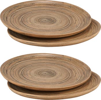 For generations, our products have been handcrafted by female Vietnamese artisans —creating pieces that are not only beautiful but deeply rooted in tradition. Lexa handcrafted products reflect this heritage, blending time-honored techniques with modern sustainability. Made from 100% natural materials, each purchase supports artisan communities and helps reduce plastic waste.\nEach product is a true original. No two are ever exactly alike, thanks to the natural variations of the material and the artisan’s hand. Slight imperfections add to their charm, showcasing the uniqueness and authenticity that mass-produced products simply can’t match. Lightweight and shatter-resistant, these products are designed for real life—durable enough for daily use, yet elegant enough to showcase in your home.\nBring elegance to your gatherings with the LEXA 12” Serving Plate 4 Piece Set—designed to elevate any occasion. With their sleek style, these versatile plates are perfect for serving everything from coffee and tea to snacks, cheese boards, or holiday spreads. Whether you're hosting a festive dinner party, setting up a tea tray, or styling your kitchen with natural charm, these plates offer the perfect blend of function and refined design.