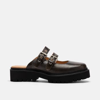 Mary Jane sweetness meets mule ease in the Marc Nolan Lexi. Crafted from calf leather with foot-conforming calf-leather lining, this closed-toe mule features an adjustable double-buckle strap, memory-foam padded insole, and a rubber lug sole with a low block heel for traction and cushioned support. Standard B width, designed for women seeking a versatile, stylish slip-on that pairs well with casual or dressier looks.