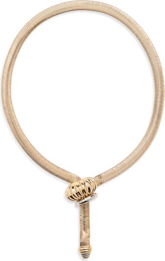 A ribbed texture emboldens the sculptural design of this snake-chain necklace that gleams with a two-tone pendant.