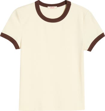Bring a retro vibe to your casual wardrobe with this '70s-inspired ringer T-shirt made from supersoft and stretchy fabric textured with fine ribbing.