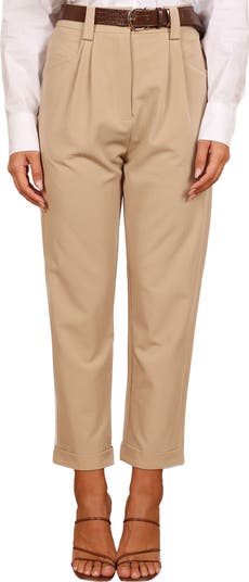 A stretchy, seasonless blend brings casual comfort to high-waisted pants equipped with practical pockets in a straight-leg silhouette.