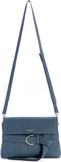Crafted from supple suede, this structured bag is finished with a decorative belt detail and an adjustable strap that can be worn over the shoulder or across the body for versatile carry.