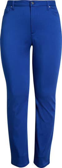 A bold hue lends eye-catching appeal to straight-leg pants crafted from a cotton-forward blend to make them a comfortable go-to for day-to-night outings.