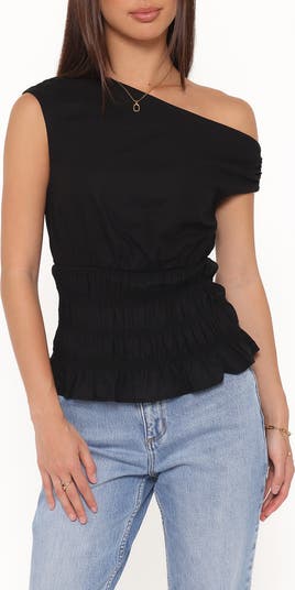 Waistline smocking shapes the silhouette of this linen-kissed top meant to show off your shoulder.