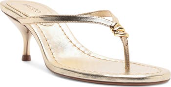 Polished hardware accentuates the slim straps of this modern and effortlessly stylish sandal.