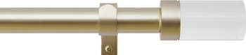 Frosted finials play elegantly against the matte-gold finish of this curtain rod that mounts quickly and easily to refresh your space with a sleek, modern touch.