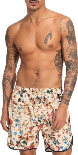 The renowned Colombian luxury beachwear brand brings its vibrant, hand-illustrated prints and artisanal craftsmanship to the fellas with its newly launched swim trunk collection. This pair is made from a lightweight weave and features a relaxed fit and retro scalloped hems.