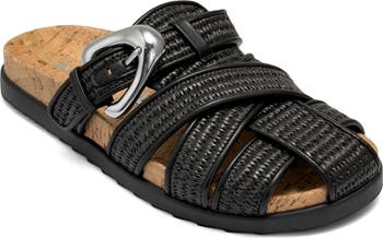 The laid-back comfort of a clog meets the classic design of a fisherman sandal in this woven-raffia style featuring an arch-supporting, double-density molded cork footbed. Injected foam cradles each footfall to keep you moving all day, while a gleaming buckle adds understated shine to your look.