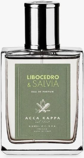 Olfactory Family: Floral, Spicy, Woody Combining the balsamic and woody notes of cedar “Libocedro”, the aromatic hints of sage and the fresh and citrusy scent of bergamot, Acca Kappa presents the new Libocedro & Salvia fragrance. Lively, vigorous and intense as life itself. Olfactory Pyramid Top notes: Bergamot - Cloves Heart notes: Rose - Sage Base notes: Cedar wood - Musk How to Use Apply directly to clean, dry skin. Holding 3-6 inches away, target pulse points such as your inner wrists and neck. Ingredients Alcohol Denat., Parfum (Fragrance), Aqua (Water), Limonene, Eugenol, Linalool, Hydroxycitronellal, Citral, Cinnamal, Geraniol, Citronellol. ESSENTIAL OILS: Cedar Wood - Cardamom - Lemon - Petitgrain - Bergamot - Cloves - Sage