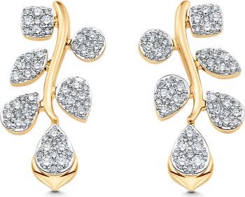 Shimmering pavé diamond clusters branch out from these whimsical, floral-inspired drop earrings crafted from radiant 18-karat gold.