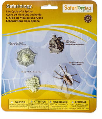 This educational Life Cycle set includes 4 figurines that detail the different stages of Spider development.