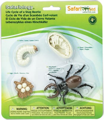 This educational Life Cycle set includes 4 figurines that detail the different stages of Stag Beetle development.