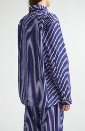 Unwind at home or savor a slow morning by the beach with this roomy pajama shirt in crisp cotton poplin sourced from Thomas Mason—a centuries-old mill in Italy’s Lombardy region. The sister-led label's embroidered monogram completes the luxe lounge look.