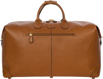 Designed and manufactured in Italy, this medium-sized 22" duffle bag from the Life Pelle Collection is made of fine, vegetable-tanned Tuscan leather. This bag is made to last and to become more and more elegant with use. The refined design is completed by a fabric lining with Bric's logo print. Equipped with an additional removable and length-adjustable shoulder strap, convenient to wear the bag on the shoulder as well. The strap on the back can be used to attach the bag to a suitcase handle. The main opening features a double-slider zip. Its roomy shape makes it very versatile: it features internal pockets, one of which is zipped, and an external zipped pocket for items you want to keep close at hand. Supplied with a leather address tag and a handy TSA lock with Bric's logo.