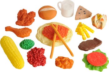 2 years & up. Bring fun dining experiences to play time with our Life-size Pretend Play Dinner Set. The pieces in this set will make children feel like they are living it up at a nice restaurant. With steak, chicken, pasta, and more, everyone will enjoy themselves. Everyone will also develop emotional awareness as they act out a common experience that people do every day. Set includes 24 pieces. Made from plastic.