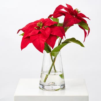 Lifelike Christmas Red Velvet Poinsettia Blooms in Pyramid Vase