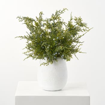This small faux topiary bush features lifelike juniper berries for a realistic look, all contained in a textured concrete pot.