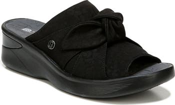 A soft knotted upper tops off the easy charm of a wedge slide sandal fitted with a shock-absorbing heel and cushy sole.