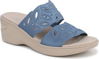 Laser-cut perforations add stunning dimension to the scalloped straps on a slide sandal made with Air Step Technology and FreeFoam cushioning for a lightweight feel and all-day comfort.