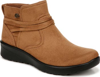 A brand-monogrammed button punctuates the ankle-height shaft of a stretchy bootie with an air-infused lug sole that grips and supports right where you need it.