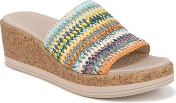 This is the first pair of BZees shoes I have purchased, and am very glad I did so! I don’t often wear shoes with heels this high, but these wedge heeled sandals are as comfortable as flip flops. The footbed is soft and absorbent, and the multicolored option is fun and versatile.