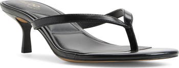 Slim faux-leather straps convene at the center toe post of a foam-cushioned flip-flop set on a modest heel for a stylish dose of height.