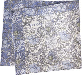 A floral pattern adds mesmerizing visual dimension to a sophisticated pocket square woven from lustrous silk with a subtle basket-weave texture that offers beautiful structure when folded.