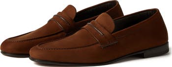 This loafer delivers the label’s signature polish with a current, clean line. Crafted and hand-finished in Italy from rich calfskin suede, the nap reads velvety and deep while rubber inserts in the sole add steady grip and stability.