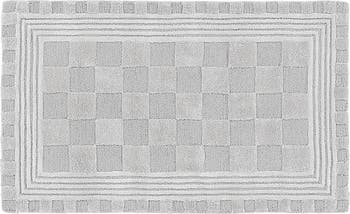 The brand's signature checks are framed by concentric rectangles on this tonal rug that puts subtle style under every step.