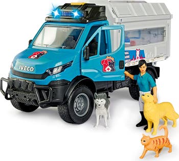 - Feature: Push-along Iveco truck with mobile vet clinic is a perfect kids' play set for animal lovers