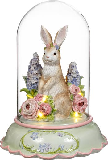 Add a touch of springtime charm to your décor with the Mark Roberts 12" Lighted Easter Bunny with Flower in a Dome. This beautifully detailed bunny is softly illuminated inside a clear dome, creating a warm, whimsical glow perfect for tabletops or displays. Elegant craftsmanship and delicate floral accents make it a standout piece for Easter and seasonal decorating.