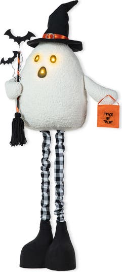 This adorable standing ghost with expanding long legs can stand on the table or floor at any place of your haunted house. With its soft fabric body, black broom and "TRICK OR TREAT" pocket, it will bring back your childhood memories.