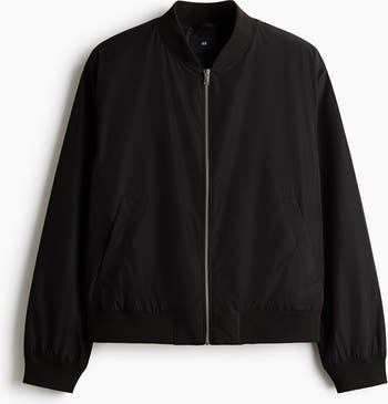 Lightweight bomber jacket in woven fabric with a ribbed stand-up collar and zip down the front. Diagonal welt side pockets with a concealed press-stud and wide ribbing at the cuffs and hem. Lined.