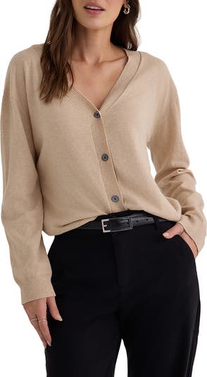 Lightweight cotton-cashmere blend yarns enhance the graceful drape of a button-up cardigan knit in a relaxed, easy-to-layer fit.