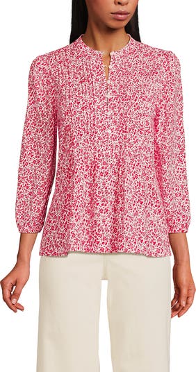 This relaxed-fit top blends comfort and understated style with thoughtful details. Crafted from a soft, stretchy jersey knit blend, it features pintuck accents and delicately shirred shoulder seams for a hint of texture. Elastic button loops add a polished touch, while the shirttail hem creates a flattering silhouette that works perfectly untucked.