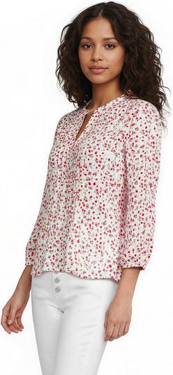 This relaxed-fit top blends comfort and understated style with thoughtful details. Crafted from a soft, stretchy jersey knit blend, it features pintuck accents and delicately shirred shoulder seams for a hint of texture. Elastic button loops add a polished touch, while the shirttail hem creates a flattering silhouette that works perfectly untucked.
