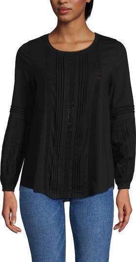 Lightweight Jersey Lace Mix Long Sleeve Pintuck Top