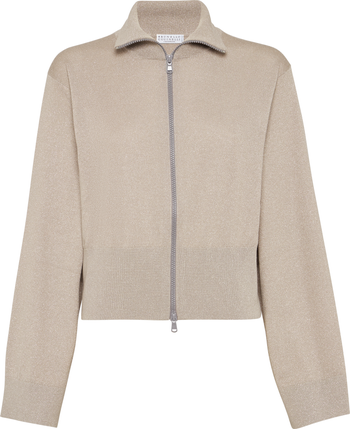 Cashmere and silk fibers are manufactured together with a fine lamé thread to enrich the texture with delicate metallic reflections. The presence of a synthetic fiber provides added comfort.