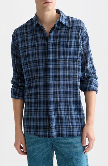 Scotch & Soda Lightweight Plaid Cotton Flannel Button-Up Shirt, Alternate, color, Pageant Blue Check