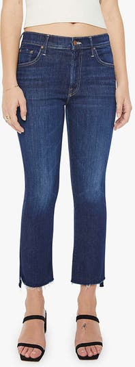 Frayed step hems make a cool, so-current update to cropped straight-leg jeans styled with a leg-lengthening high waist.