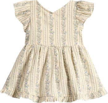 Flutter sleeves and a ruffle hem sweeten this floral-print cotton romper that will give baby a complete polished look on warm days.